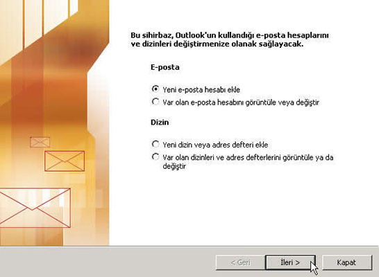 Aşağıdaki aşamaları takip ederek hesap kurulumu yapabilir, e-postalarınızı Outlook 2003 üzerinden alabilirsiniz.